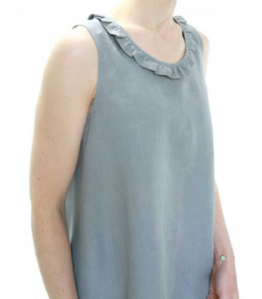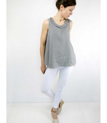 Alizé est un débardeur chic à l’encolure ronde bien dégagée. avec un bas amplement évasé pour un effet très fluide.