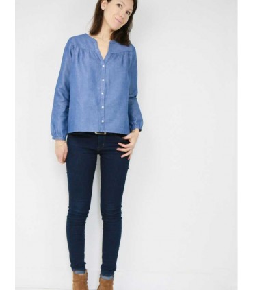 Envol est une blouse féminine au volume généreux et au raffinement irresistible grâce à sa patte de boutonnage devant et le petit col enforme .