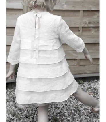 Petite Fée est une robe légèrement évasée, réalisable avec ou sans volant. Le top est doublé, la fermeture au dos se fait par un ruban fixé sur le haut d’une ouverture goutte.