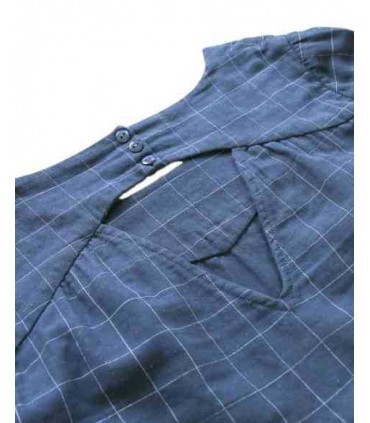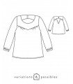 Artesane est une blouse droite aux manches courtes ou 7/8 froncées sur un bracelet de poignet. Empiècement doublé avec découpe oblique sur le devant, et joli décolleté V au dos surmonté d'une fine patte de boutonnage. Quelques fronces peu volumineuses sous les empiècements dos et devant.