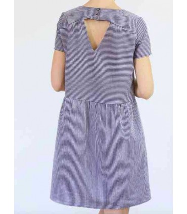 Déclinable en robe (taille élastiquée ou non). Finitions coutures anglaises et fourreau.