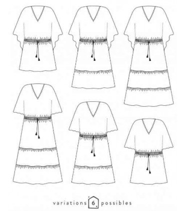 - Tissu (version robe courte) : 190/190/190/190/190/190/190/190 cm x laize 140 cm ou 190/190/190/220/220/220/220/220 cm x laize 110 cm