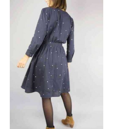 Harmonie est une robe aux jolis volumes adoucis par une taille marquée, blousante ou non. Des fronces ponctuent le dos et le devant de l’empiècement épaule, et confèrent un volume féminin à la jupe. La robe, boutonnée devant, propose soit une manche 7/8, soit une manche courte papillon. Finitions couture anglaises et coutures bordées. Peut également se décliner en blouse et en robe longue.