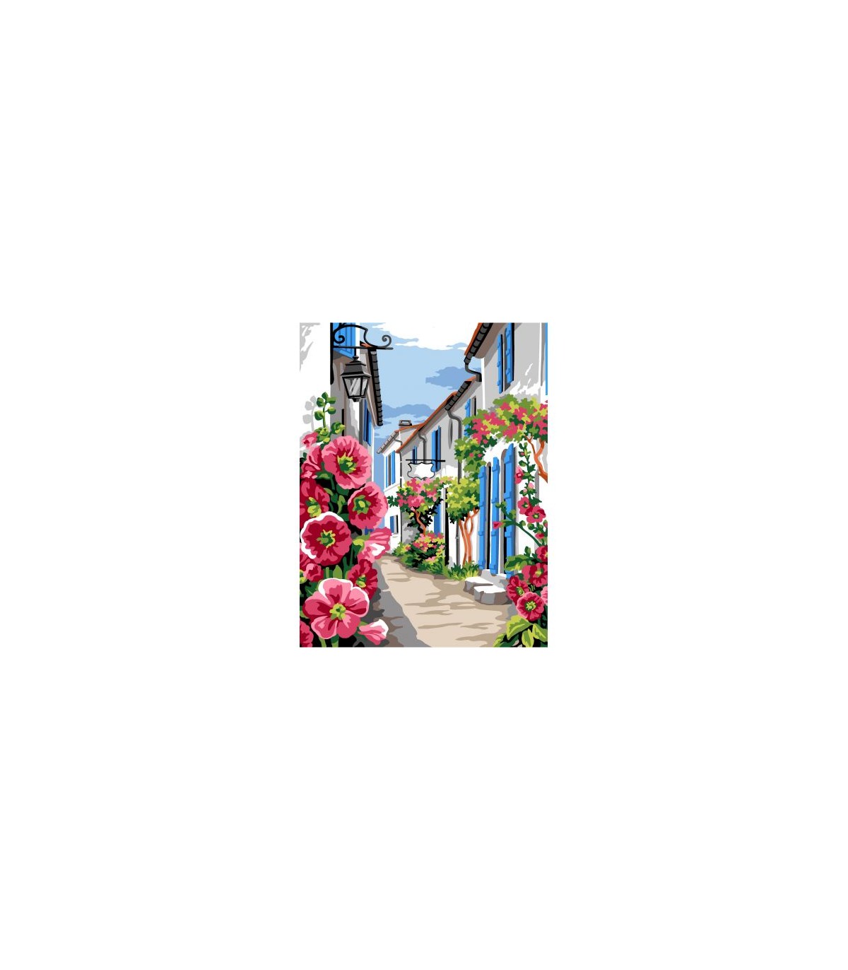 Canevas à broder sur toile pénélope , représentant une ruelle fleurie