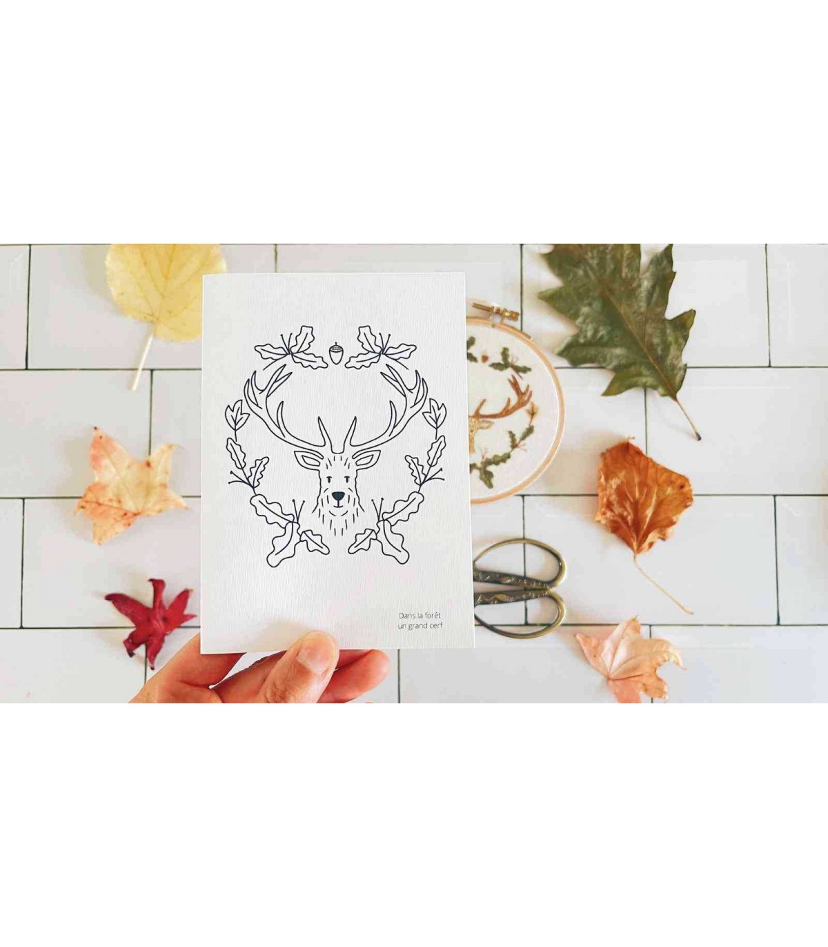 "Dans la forêt, un grand cerf" c'est entrer dans l'automne avec un projet au long cours qui vous occupera quelques heures de vos soirées ou de vos week-end sous un plaid. Brodez ce cerf majestueux, jouez avec les couleurs et les points. Aucune difficulté pour ce modèle ambitieux mais véritablement accessible à ceux qui désirent découvrir la broderie.