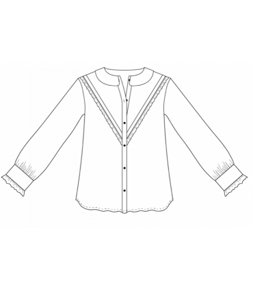 Linoa est une jolie chemise parfaite pour la mi-saison. Avec ce modèle tu apprendras à perfectionner différentes techniques de montage, comme la pose d‘un col, la réalisation de fronces, de pattes invisibles, de poignet de manche… Cette chemise est habillée d’un joli col claudine, et de différentes découpes habillées de fronces. Tu trouveras un petit rappel des fronces au bas des poignets de la chemise.