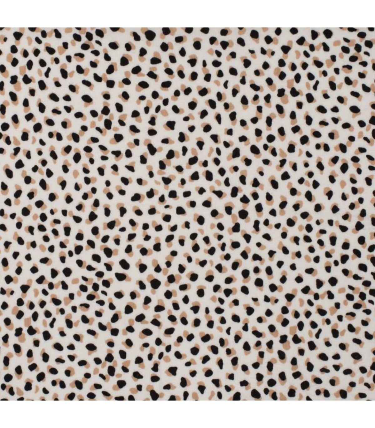 Jolie viscose blanche imprimée léopard . Parfait pour réaliser une robe, une blouse,… Nous vous conseillons de le coudre avec le fil Gütermann Polyester n°800 et des aiguilles microtex.