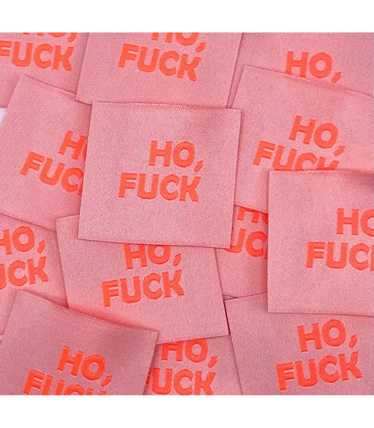 Étiquettes tissées "Ho Fuck " rose fluo à coudre sur vos vêtements. , elles apporteront une jolie touche finale, personnalisée et irrévérencieuse!