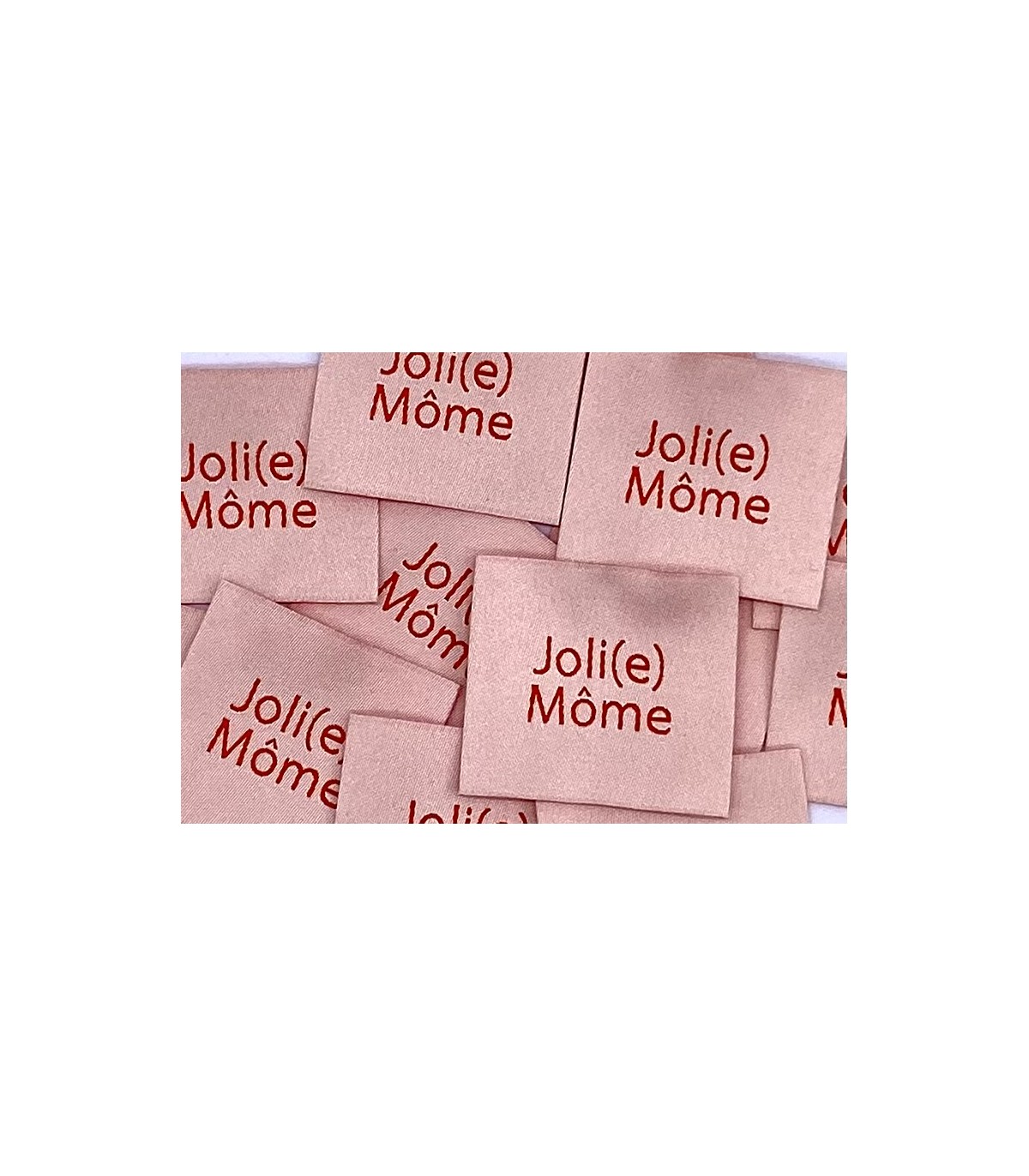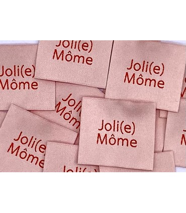 Imaginée par L’étiquette Home Couture, cette étiquette tissée de couleur saumon avec l'inscription "Joli(e) Môme" est à coudre sur vos vêtements.
