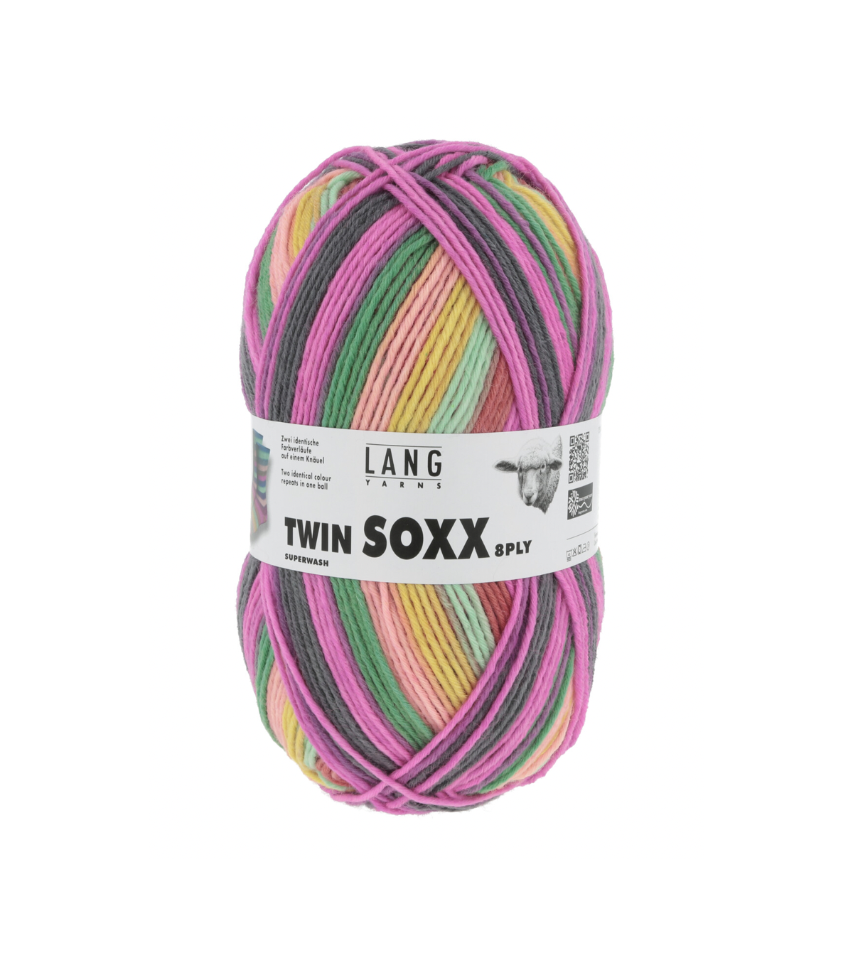 Particulièrement pratique : les laines de la série Twin Soxx de Lang Yarns vous faciliteront le tricot de deux "chaussettes jumelles" au motif identique : après la première moitié de la pelote, il y a un marquage à l'intérieur de la pelote afin de vous signaler le début du rapport.