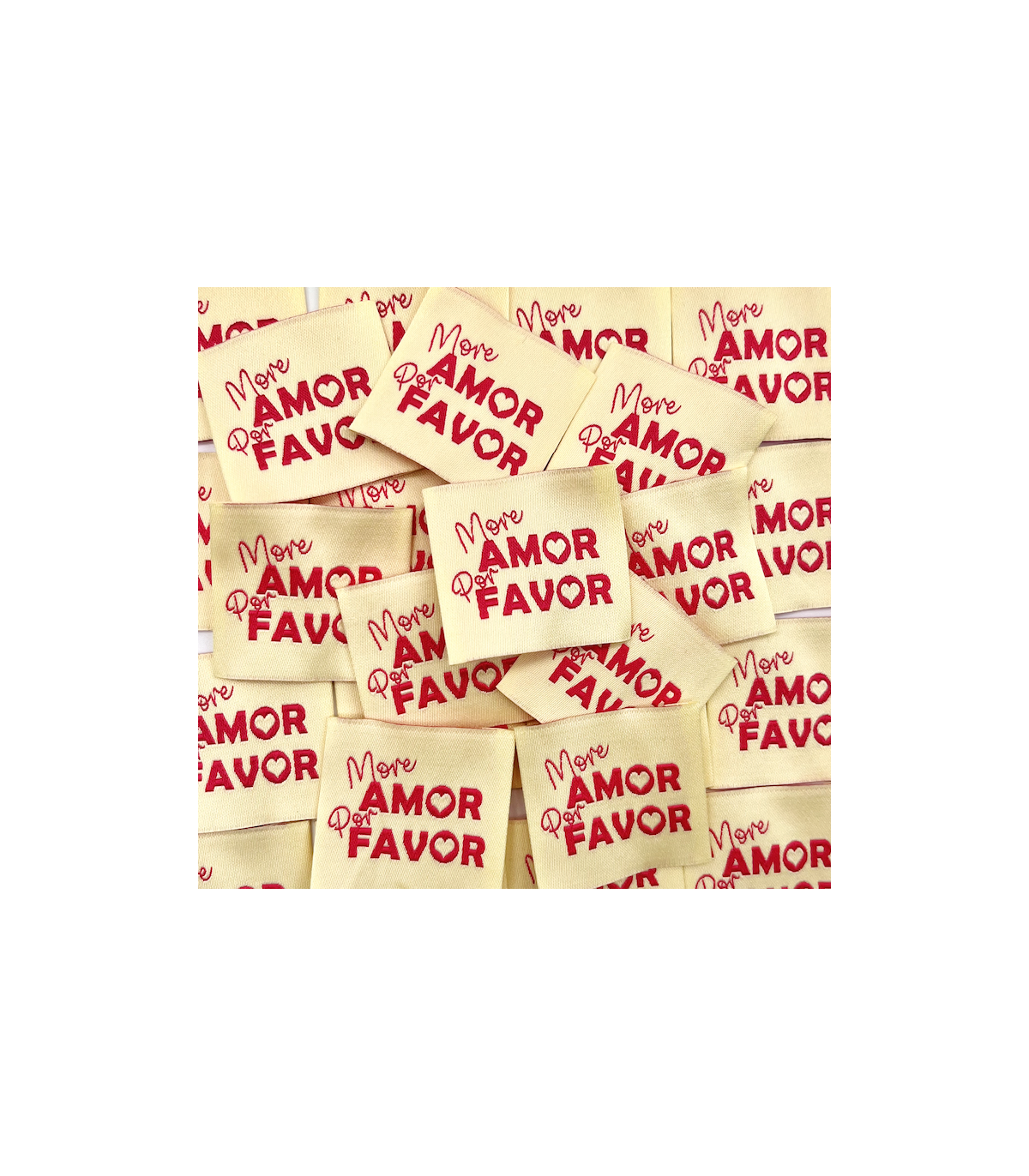 Étiquette tissée à coudre : More Amor Por Favor