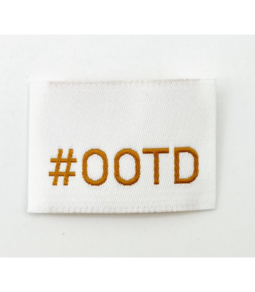 Imaginée par L’étiquette Home Couture, cette étiquette tissée de couleur blanche avec l'inscription "#OOTD" en camel est à coudre sur vos vêtements.