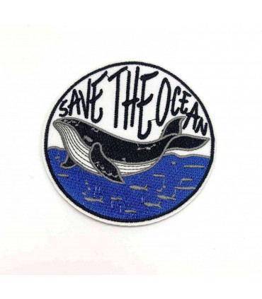 Patch thermocollant représentant une baleine avec le message sauver les océans