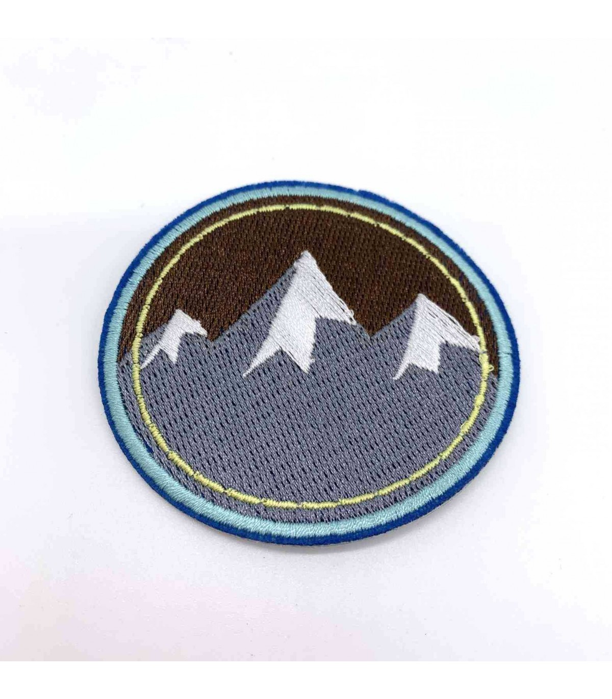 Patch thermocollant rond représentant un paysage montagne.
