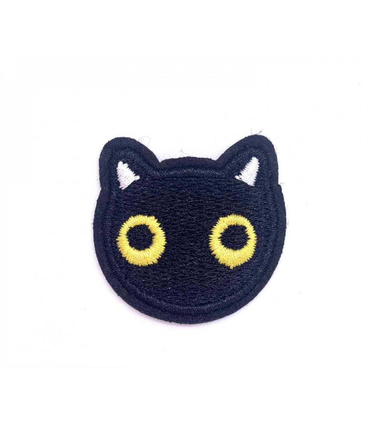 Patch thermocollant représentant une tête de chat noir.