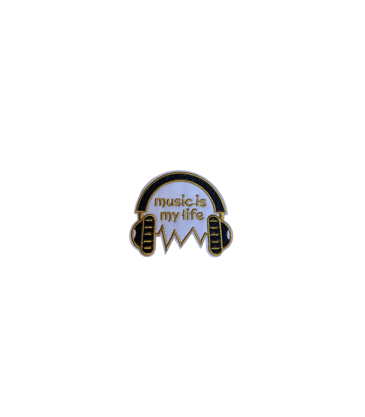 Patch thermocollant représentant un casque de musique avec l’inscription « music is my Life »