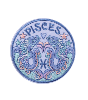 Patch brodé thermocollant rond représentant le signe astrologique Poisson (20 Février - 20 Mars).