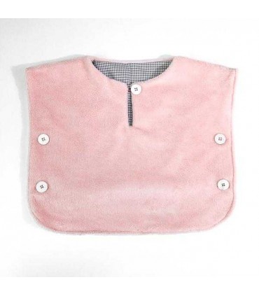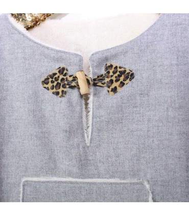 Fermeture encolure avec boutons et tresses pompons décoratives.