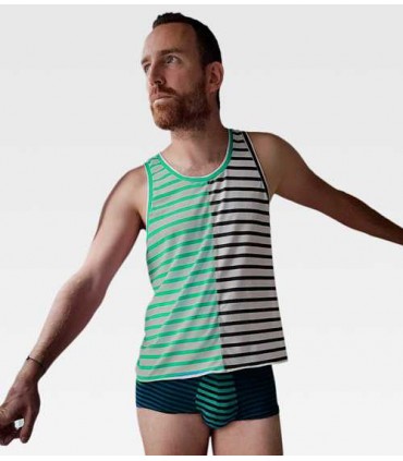 Ce débardeur résolument contemporain possède une coupe assez près du corps. Suivant l’élasticité du jersey choisi et la taille dans lequel vous le coudrez il deviendra une pièce au style “vacances” ou plus sport en version ajustée. L’encolure assez ouverte au devant permet de le porter en sous-vêtement mais aussi de l’adopter comme un vêtement estival à part entière. Des bandes sont prélevées dans le même jersey ou un autre suivant votre fantaisie. Elles assurent la finition des emmanchures et du col en toute discrétion. Le boxer l’Audacieux a été pensé pour un confort optimal, c’est un boxer court avec un empiècement devant doublé. Le dos peut se décliner en deux versions. Un empiècement haut (Version A) permet de s’amuser avec les tissus et a été pensé pour mettre en valeur les formes masculines. Une seconde version (B) au design plus classique permet d’obtenir un boxer pratiquement sans aucune couture intérieure. La ceinture élastique viendra aussi apporter unetouche personnelle suivant sa largeur et son style .