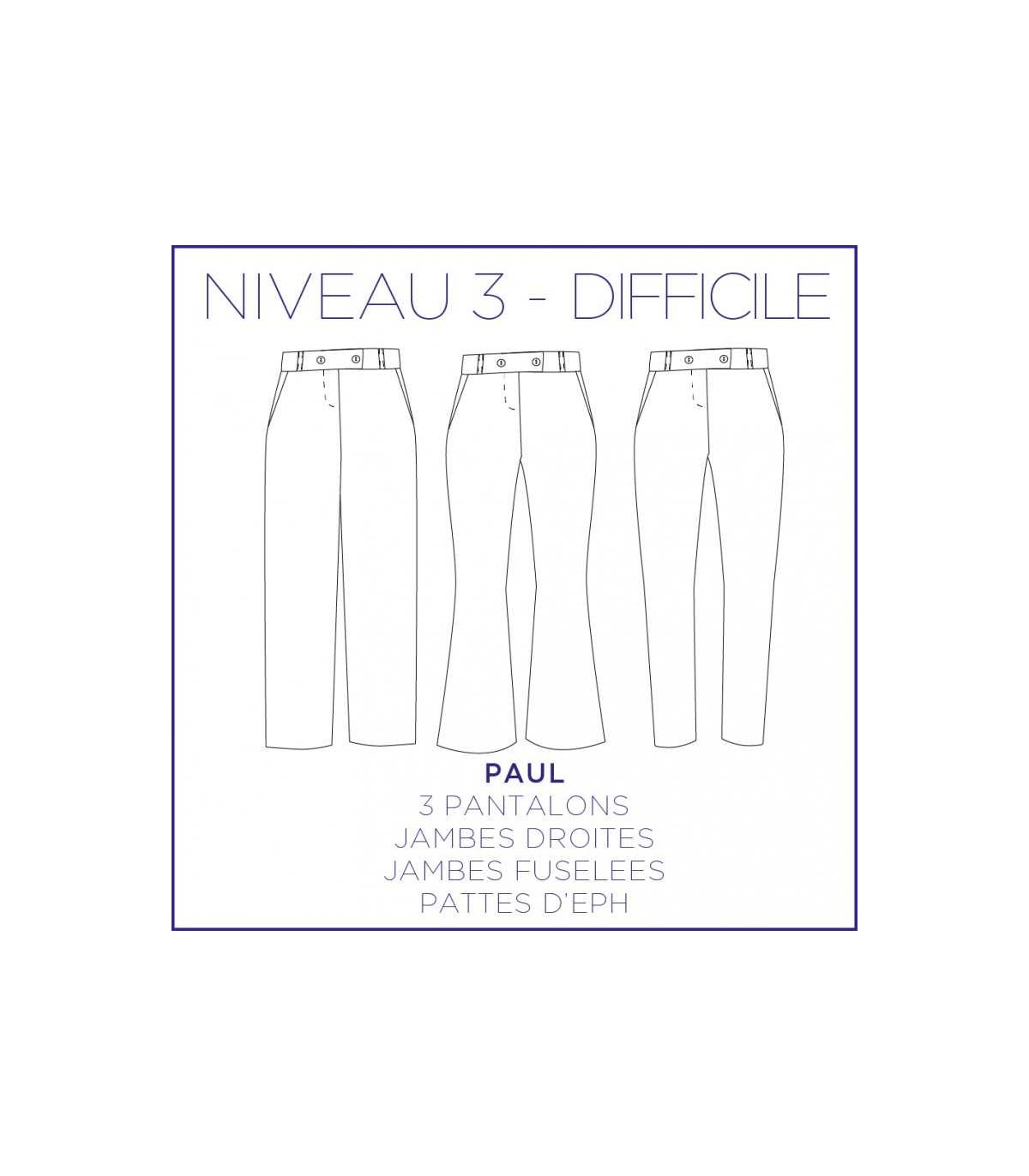 Paul, c'est 3 pantalons en un patron : fuselé, large ou patte d'éph.Il sera un indispensable de votre garde robe.