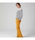 - tracé rouge jusqu’au genou puis bleu : patte d’éph. Utilisez un jeans, un velours cotelé ou un coton rayé.