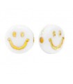 Apportez une touche personnelle à votre collection de bijoux avec ces perles rondes blanc à motif smiley de coloris doré.