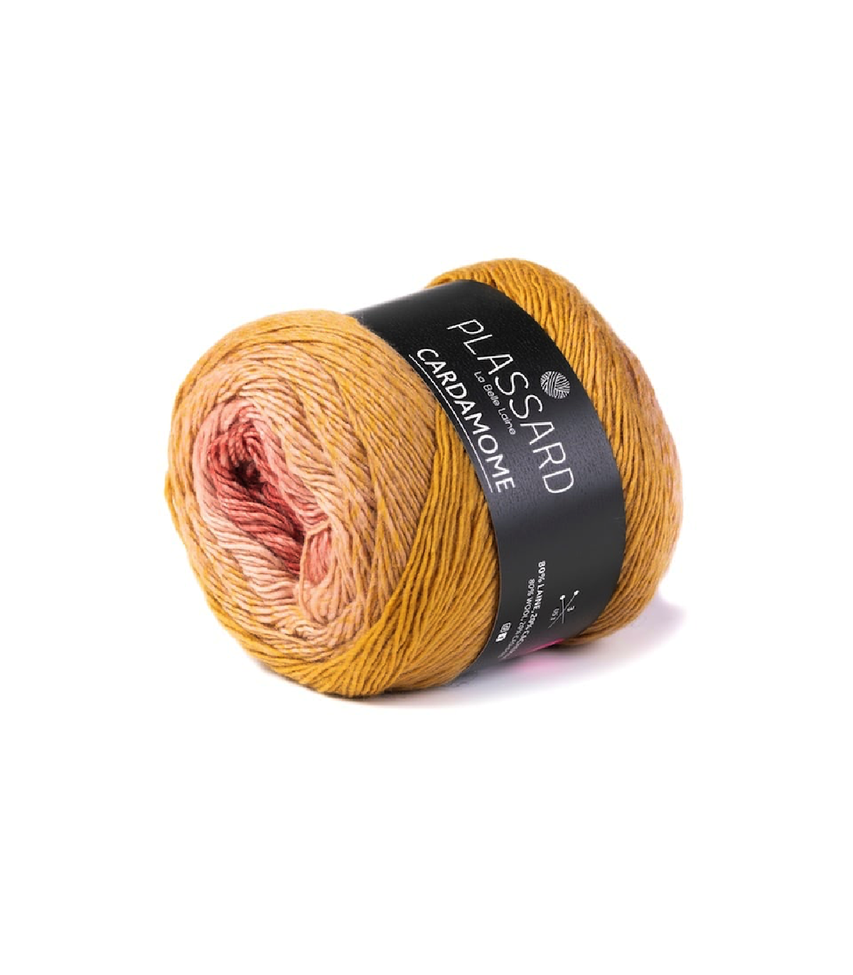CARDAMOME c’est un voyage au pays de la délicatesse, du raffinement et de la douceur tant par sa composition, 80% laine mérinos et 20% cachemire, que par la subtilité de ses dégradés de couleurs. Il est proposé en pelote fleur de 100 gr afin de dévoiler la richesse de ses dégradés. Son métrage de 500 m permet de réaliser de magnifiques châles au tricot ou au crochet mais aussi un débardeur seconde peau avec une seule pelote.