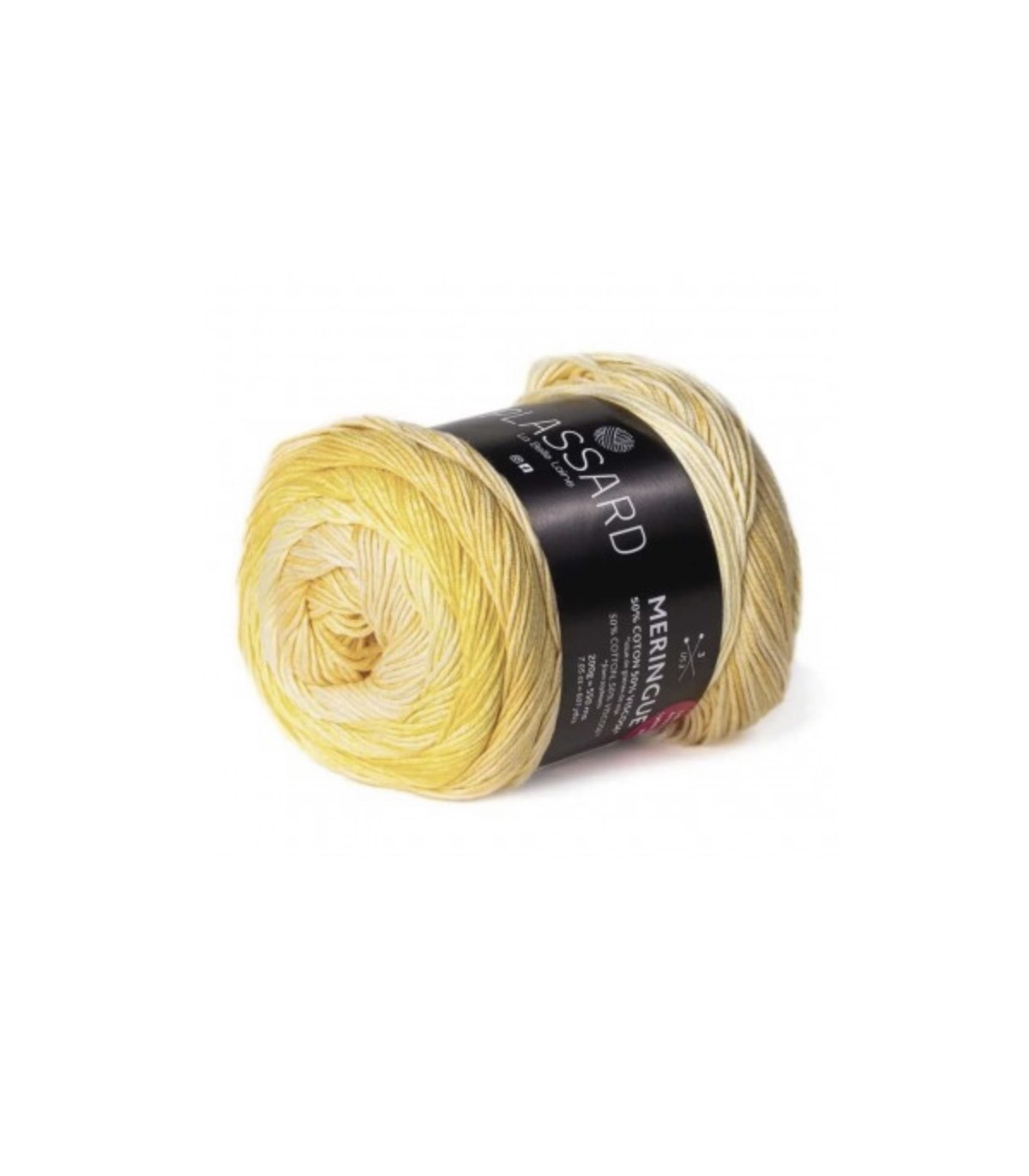 MERINGUE, c’est LA nouvelle maxi pelote fleur de la saison. Ce fil est composé à 50 % de coton et à 50 % de viscose de soja, ce qui lui confère à la fois douceur, bien-être et fluidité.Il est décliné en 3 nuances subtilement dégradées en camaïeu de couleurs chaudes ou froides, à la fois lumineuses et joyeuses.Une pelote pour faire un modèle qui sera toujours unique, c’est la promesse d’un modèle à la fois ludique et singulier pour accompagner tous les mouvements et les moments de la journée, en toute gaieté et liberté ! Un modèle offert sur chaque pelote.Mais au fait, la fibre de soja, c’est quoi exactement ? La viscose de soja est produite à partir des déchets végétaux de l’industrie alimentaires ou des protéines issues des graines soja. Elle est comparée également à de la soie pour sa douceur ou à du cachemire. Elle présente aussi tous les avantages des fibres végétales artificielles : douceur, légèreté, infroissable, thermorégulatrice et elle favorise le transfert d’humidité !