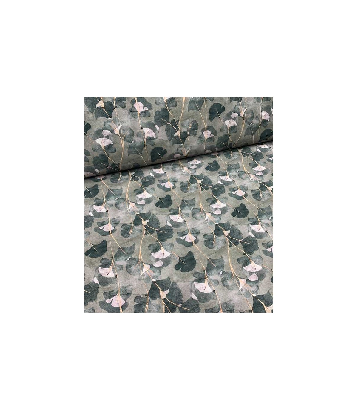 Très jolie toile de coton verte imprimée motifs feuilles de ginkgo biloba. Avec ce tissu 100% coton et son graphisme tendance , créez des accessoires modes et fun!. Nous vous conseillons de coudre ce tissu avec du fil Gutermann 100% polyester coloris n°824 .