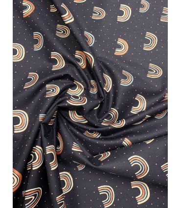 Popeline de coton aux motifs arc en ciel avec une touche de lurex qui ravira les petites demoiselles. Idéale pour de jolis accessoires , décoration ou vêtements.