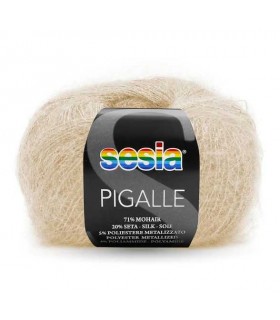 PIGALLE est un fil de mohair et soie avec une touche de lurex.Vous pouvez l'accoler avec un autre fil de mohair et soie ou un fil de mérino pour donner plus de gonflant à votre tricot.