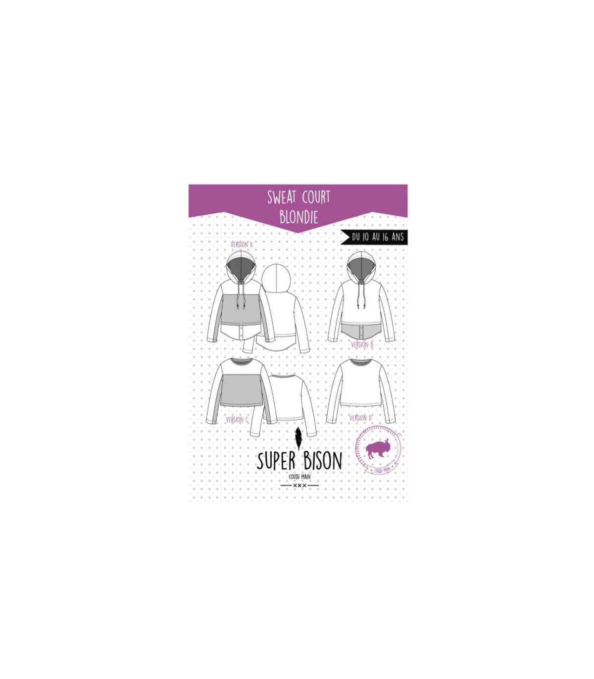 Ce patron offre beaucoup de variantes pour ce sweat court permettant de vous amuser et de mixer les tissus: avec ou sans capuche, avec ou sans bas de chemise, avec ou sans découpé sur le devant...