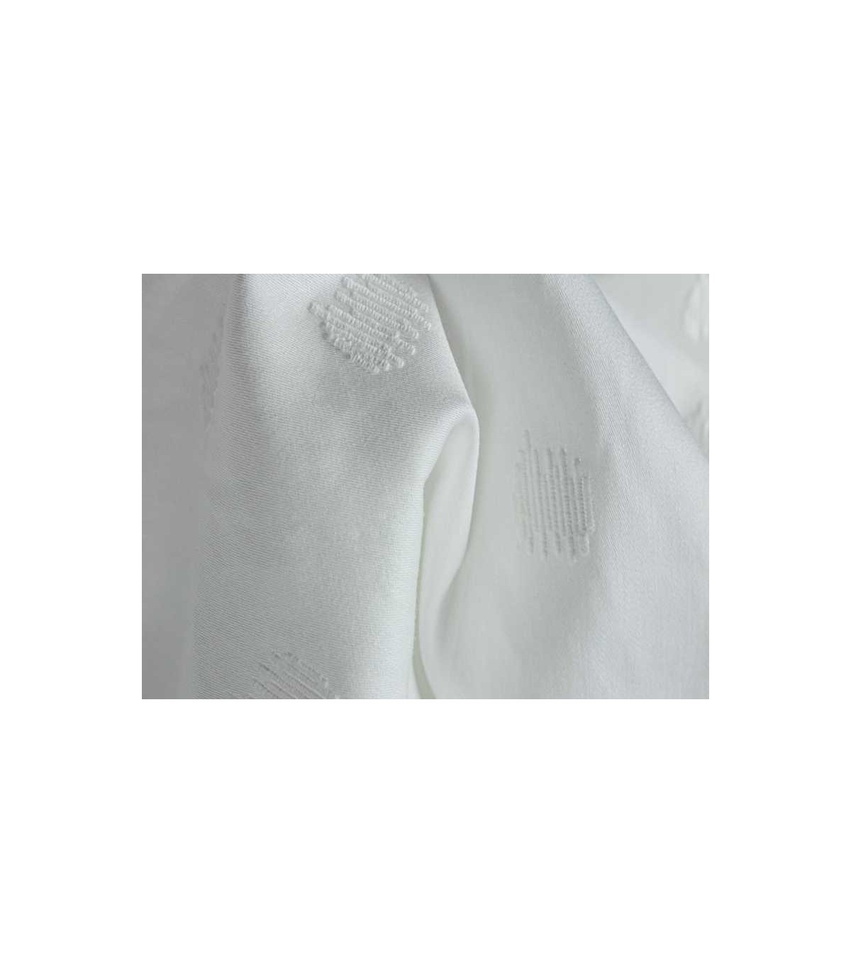 Jolie popeline de coton blanche rebrodée en ton sur tout de ronds en relief , le bord est festonné brodé